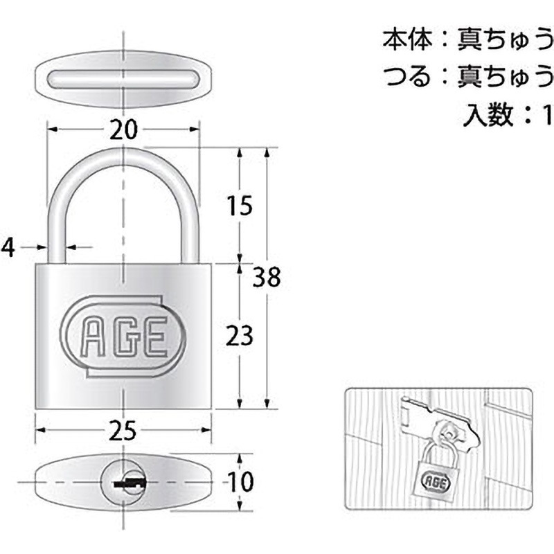 ヒナカ AGE 南京錠 シリンダー錠 同一鍵 (鍵番号No.312) No.1060-25ミリ
